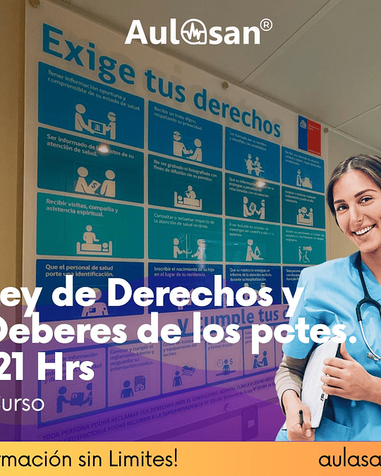 Revisa toda la información del curso Ley de Derechos y Deberes de los Pacientes, 21 Hrs Aquí